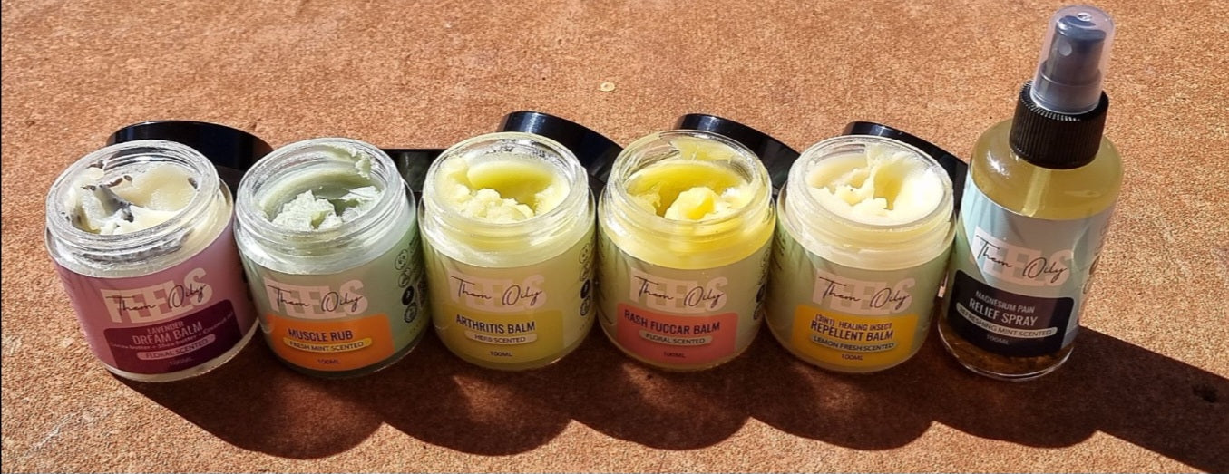 We mix and infuse real healing ingredients - powered by nature and handmade under the Northern Territory sun. Each balm begins with raw, honest botanicals sourced from Australia bushlands, chosen for their natural strength and skin-healing benefits From native plants like Turkey Bush to nutrient-rich oils, every ingredient is carefully infused into our blends - keeping it local, natural, and full of pure plant power. Real healing. Real care. Real Results