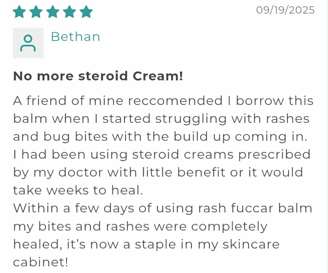 " Within a few days of using Rash Fuccar balm, my bites and rashes were completely healed."