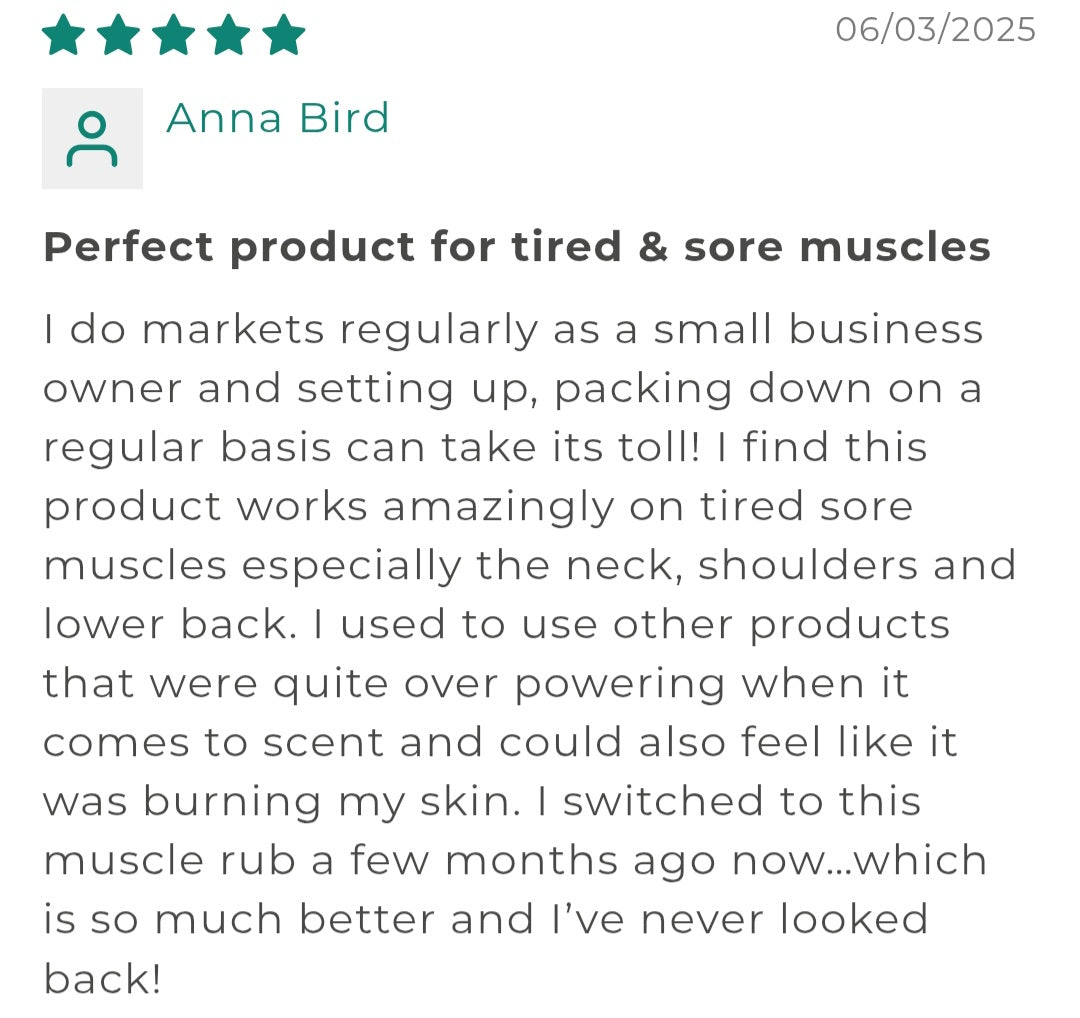 Fresh & Herbaceous, bringing a gentle warming sensation & that "worked-in" feel when massaged